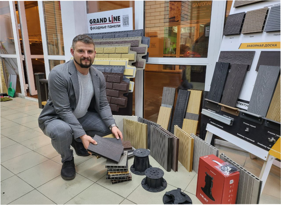В шоуруме представлены десятки вариантов сайдинга и фасадных панелей различных цветов, фактур и производителей.