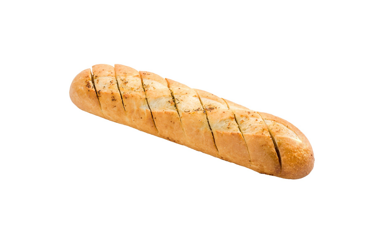 Ароматный багет с добавлением свежих трав, с хрустящей корочкой и мягкой, нежной мякотью.